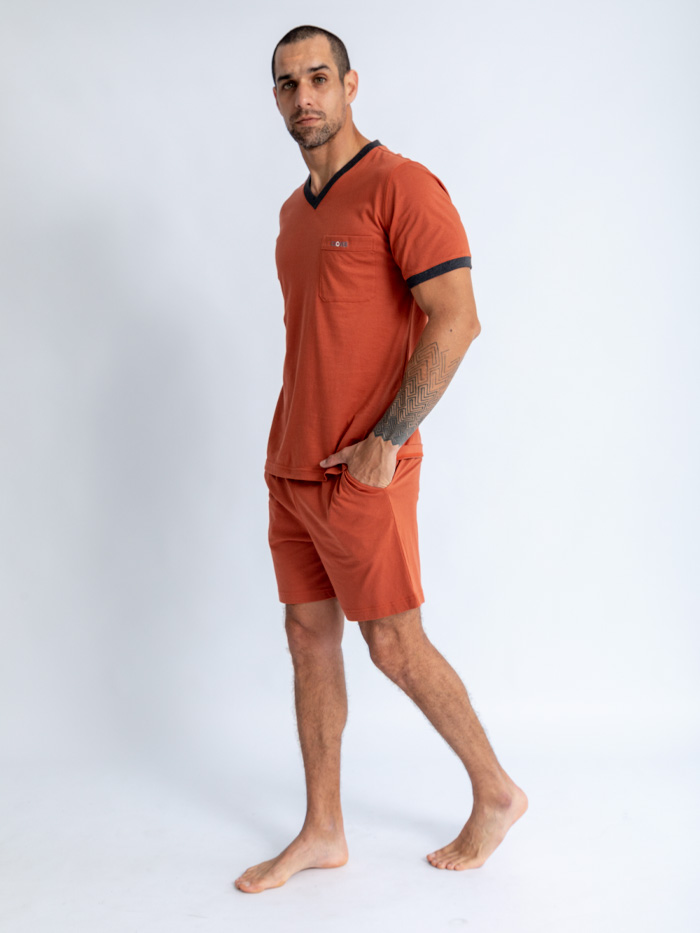 Pijama cómoda y suave por el tipo de tela con la que está elaborada, se caracteriza por su estilo fit clásico. Cómodo Short con cintura elásticada, con tira de amarre para un mejor ajuste y bosillos funcionales en lados laterales. Polo manga corta con bolsillo funcional en lado izquierdo de la pechera.