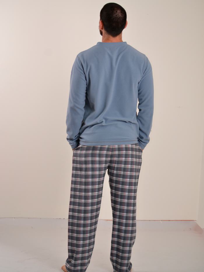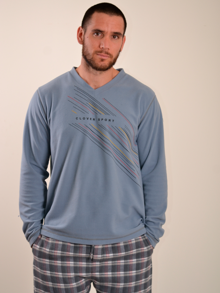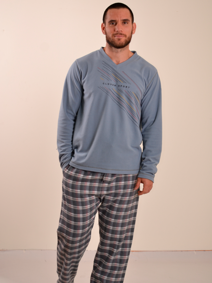 Set pijama Clover Cherokee. Polo manga larga en micropolar y pantalón hecho en tela villela.
