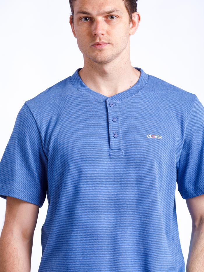 - Cuello: Henley con una botonera de tres botones, ideal para ajustar el escote y dar un toque casual.